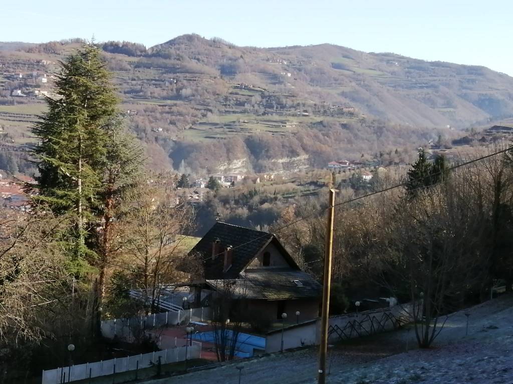 Hoe laat deze foto door onze part-time buurvrouw Maria-Rosa is genomen, weten we niet. Dat het in Cortemilia flink koud kan worden inmiddels wél, getuige ook de rijp op het veld. De achterkant van het chalet kijkt uit op het oosten. Dus in de winter verdwijnt de zon alweer vroeg achter de heuvels die je rechts van de foto kunt vermoeden.